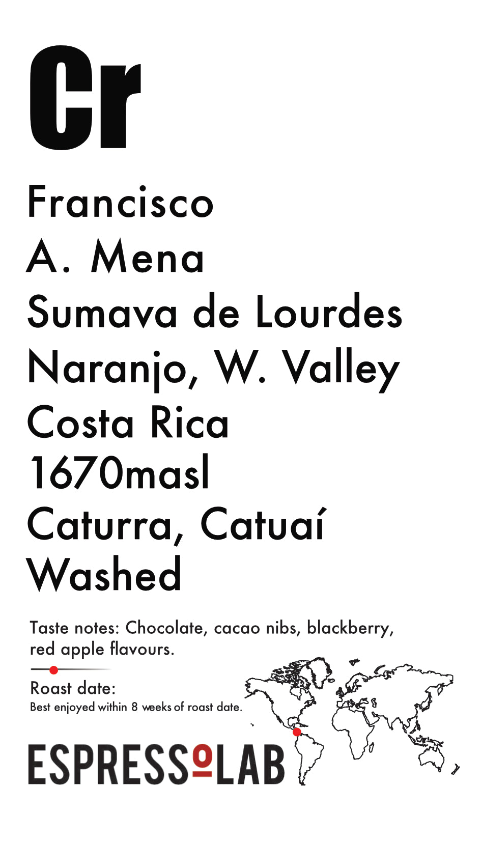 The farm is located in Costa Rica's West Valley Region and in the micro region of Naranjo. There are two plots located on the Sumava Farm, one is called Monte Llano Bonito which is comprised of 9 plots. The other section is 6 plots called Monte Lourdes.